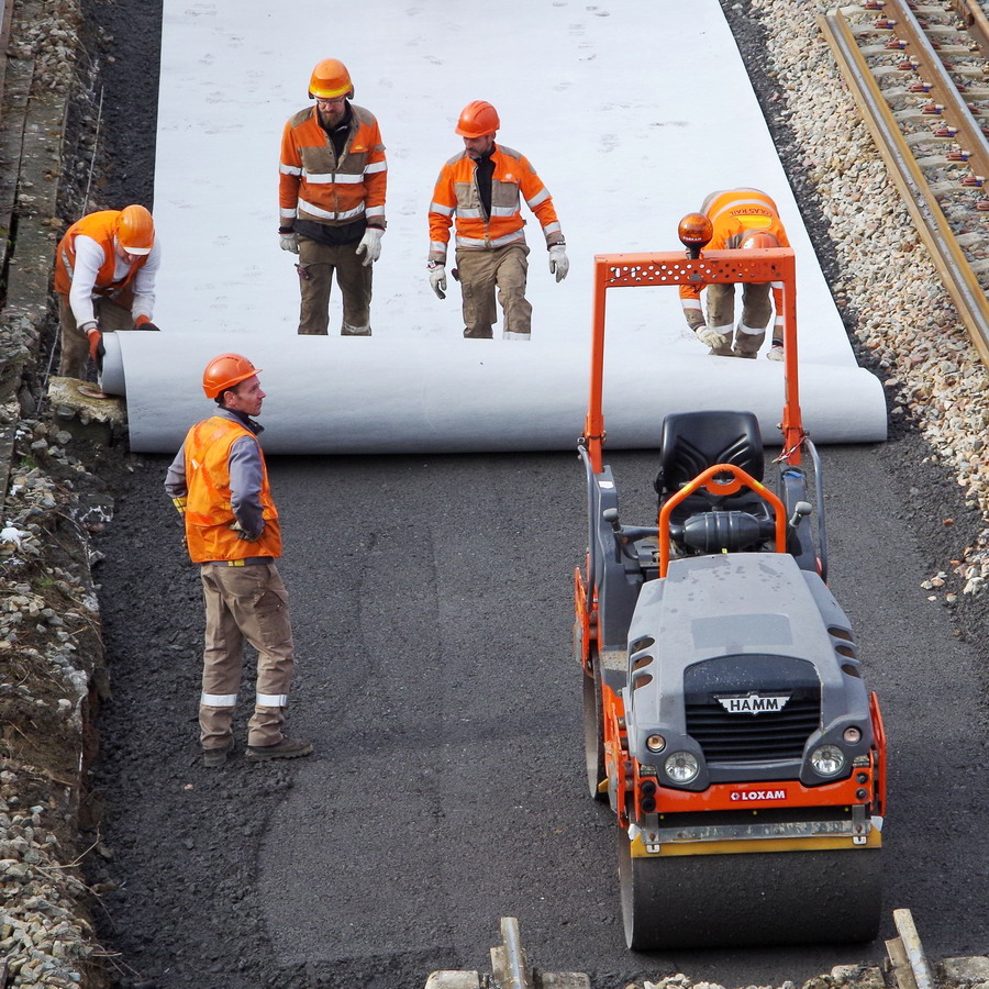 Pour la mise en place d'une sous couche géocomposite drainante par les équipes de Colas Rail, cette partie se terminera normalement vendredi 16 février 2018 après le traitement de la zone boueuse