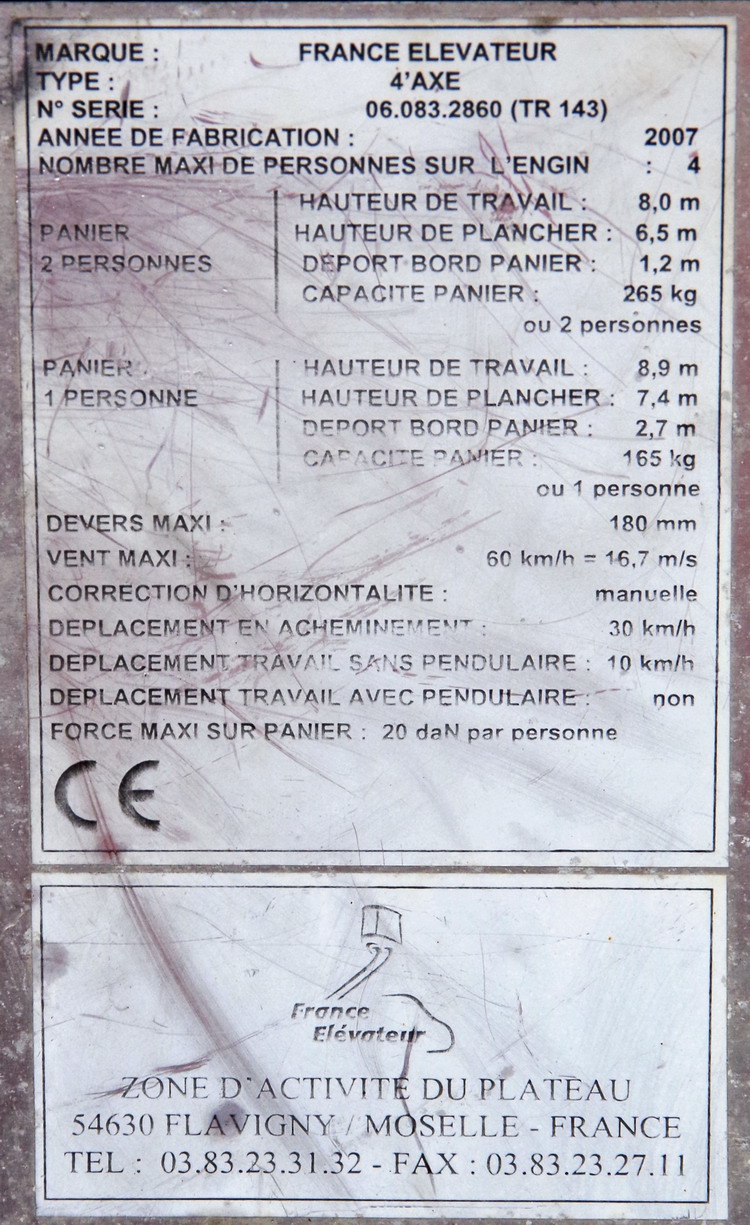 Voici un 4'Axe de France Elévateur n°06.083.2860 de 2007 SNCF-AM - TR 143 avec l'immatriculation route 8331 XJ 80