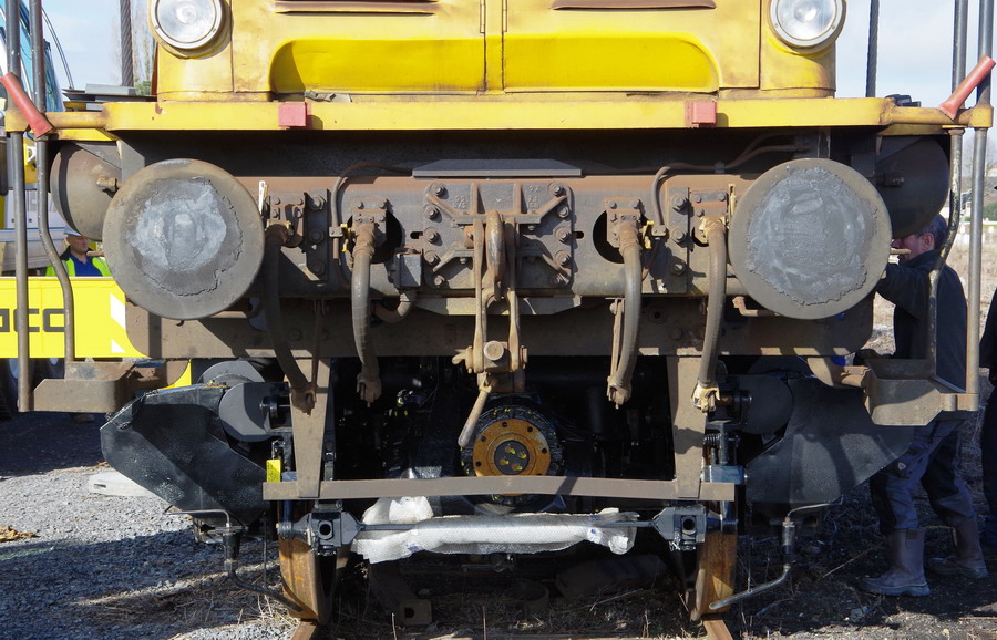 mise en place des bogies d'origine révisés après le soulèvement de la machine à Chaulnes le 06-03-2018