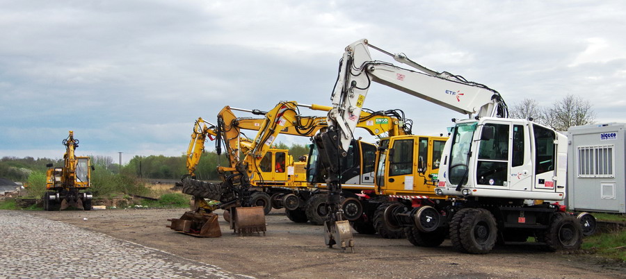 l'ensemble des Pelles Rail route sur la base de travaux de la gare de Ham le 15-04-2018
