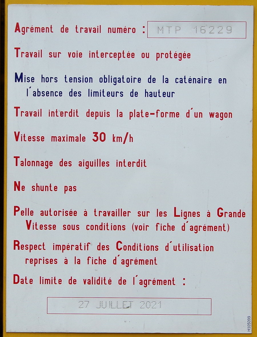 Geismar KGT-E n°5113 de 2016 pour SFERIS n°6 - Agrément de travail MTP 16 229 - 27-07-2021