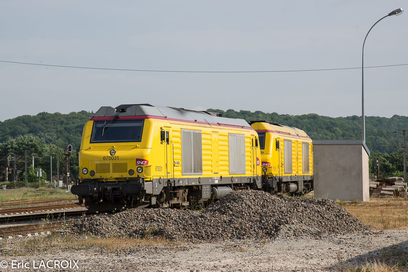 ex machine en livrée Fret puis en livrée grise et la voila en livrée Infra jaune elle se trouve à la sortie Nord