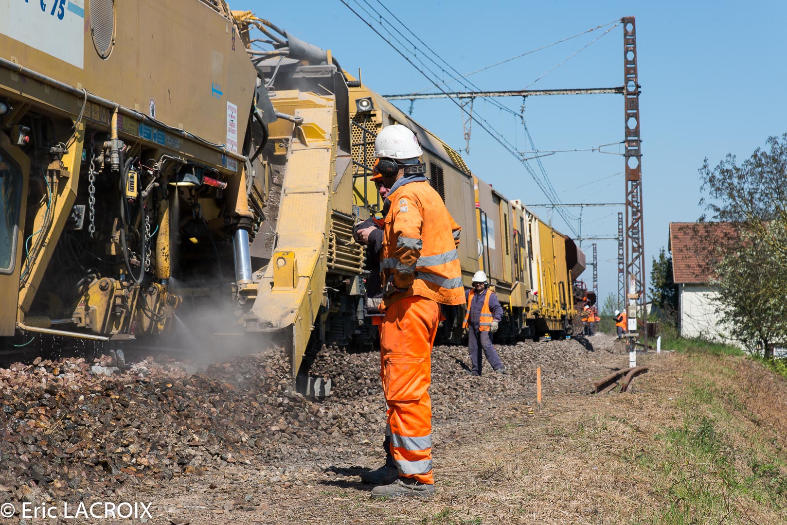 Dégarnisseuse Cribleuse Matisa C-75 - 99 87 9 314 507-4 GCF Roma sur le RVB voie 1 bis à Courtois sur Yonne (89) en avril 2017.