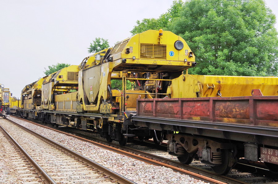 préparation du retour de la rame de 'la Coupe' Train de pose P95 ETF 99 87 9 311 503-6 à Wiencourt-l'Équipée (80)
