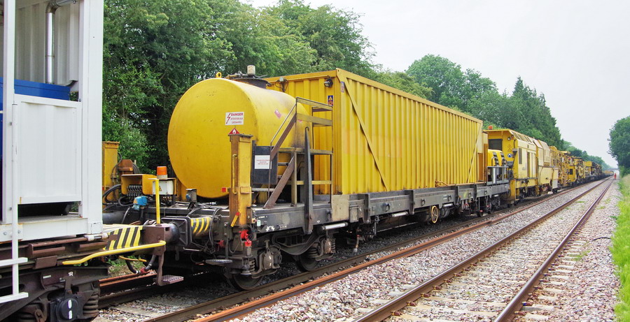 Fin de chantier pour ce jour et préparation du retour de la rame de 'la Coupe' Train de pose P95 ETF 99 87 9 311 503-6 à Wiencourt-l'Équipée (80) le 06-06-2018