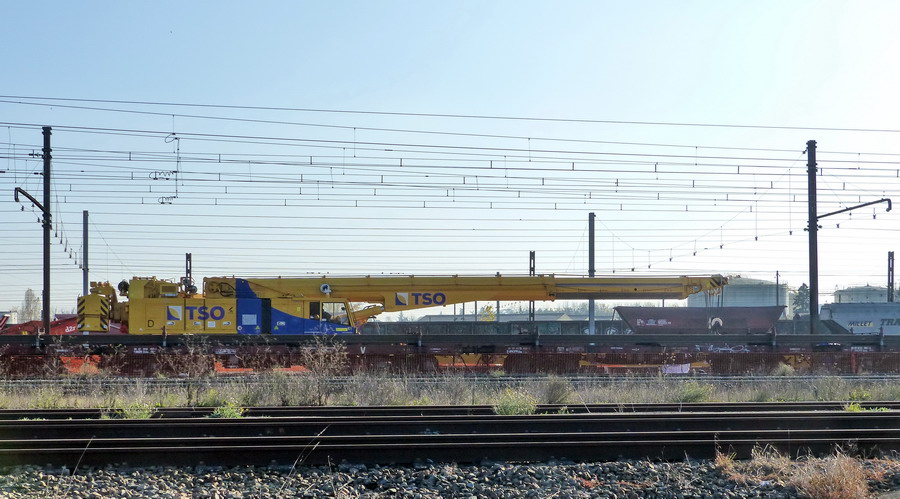 La grue Kirow est stationnée en gare de Massy-Palaiseau depuis une semaine :