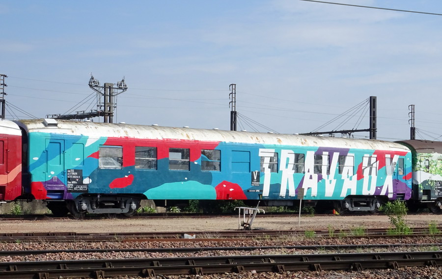 la troisième voiture la 80 87 979 3 408-6 Uas H 55 0 - SNCF-TR en queue manoeuvre pour son dernier voyage pour le hall de l'ex SERNAM