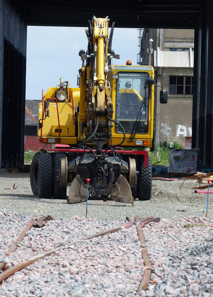 Voici la situation avec l'avancement des travaux de voie et la réapparition de la Pelle Rail route Atlas 1404 KZW n°241Z301907