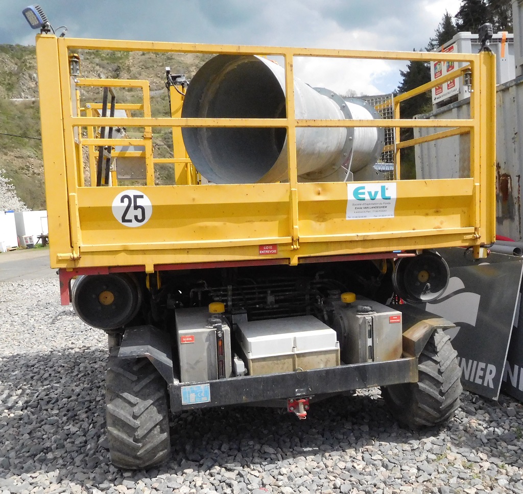 Ce lorry a une cuve de 2000 litres, équipée de lances de pulvérisateurs. Celle-ci sert de réserve en eau pour les traitements herbicides au sein des chantiers ferroviaires réalisés par EVL.