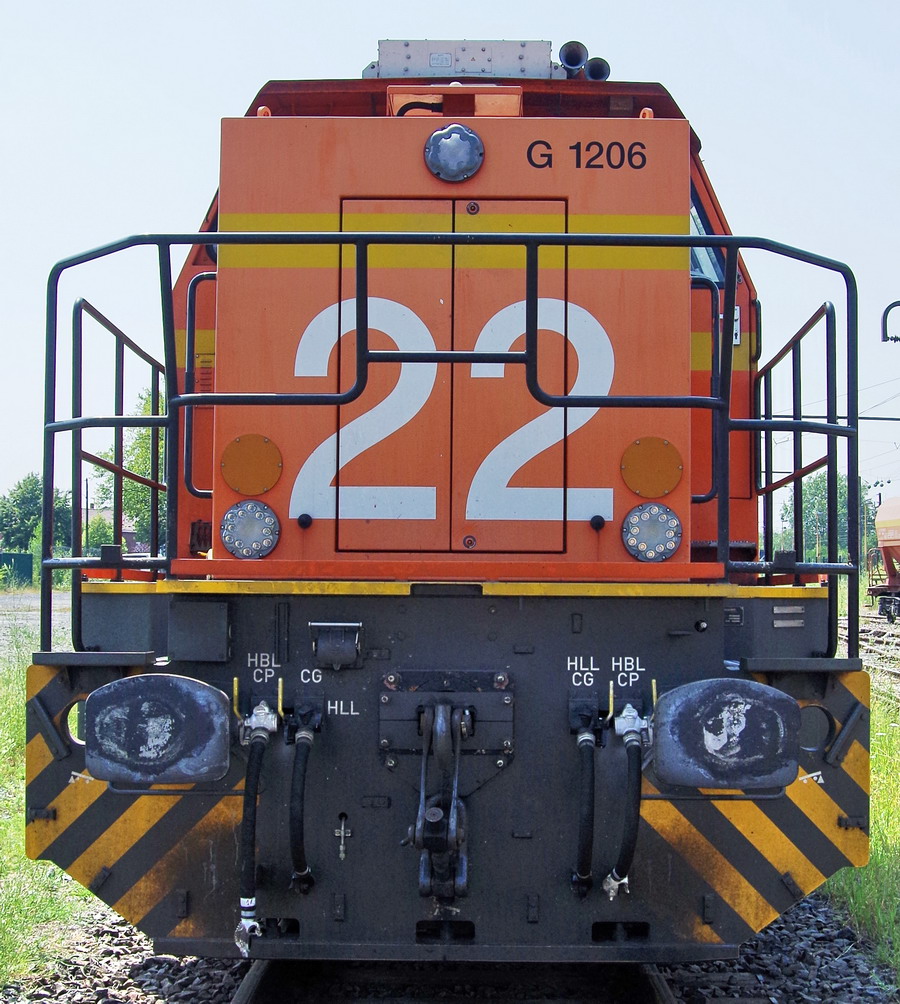 Voici la machine G 1206 BB 5001810 - 92 87 0061 704-8 F-COLRA de Colas Rail N°22 avec une rame de Faps