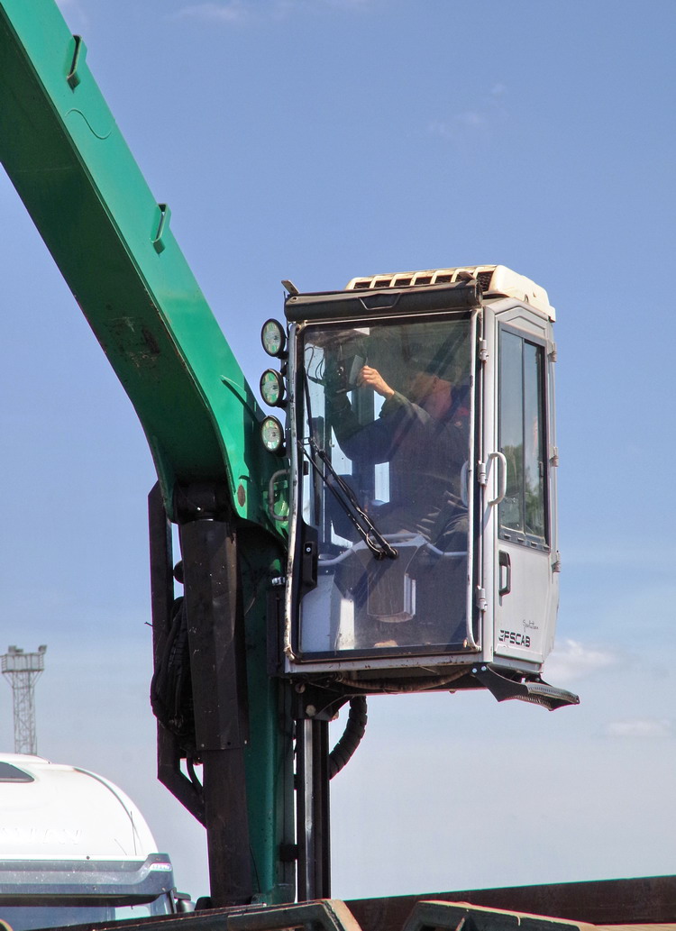 puis chargement dans le camion par une grue LIEBHERR LH30 de Derichebourg à Laon le 19-07-2018