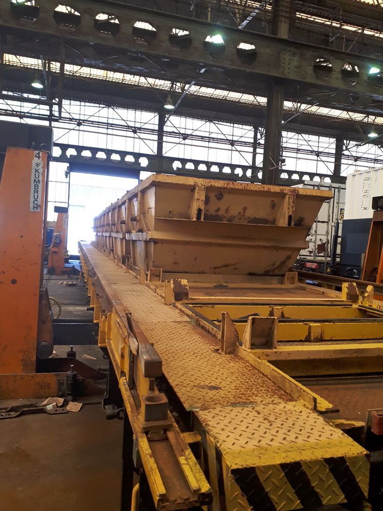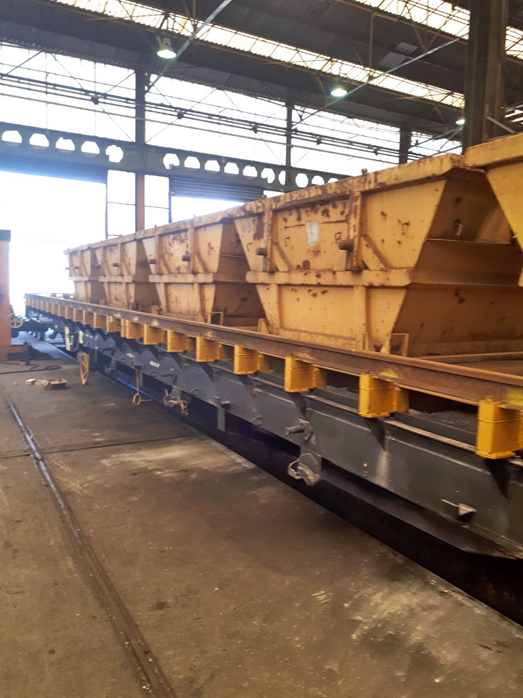 dans l'atelier de maintenance le wagon plat avec bennes 99 87 9 352 551-5 R680