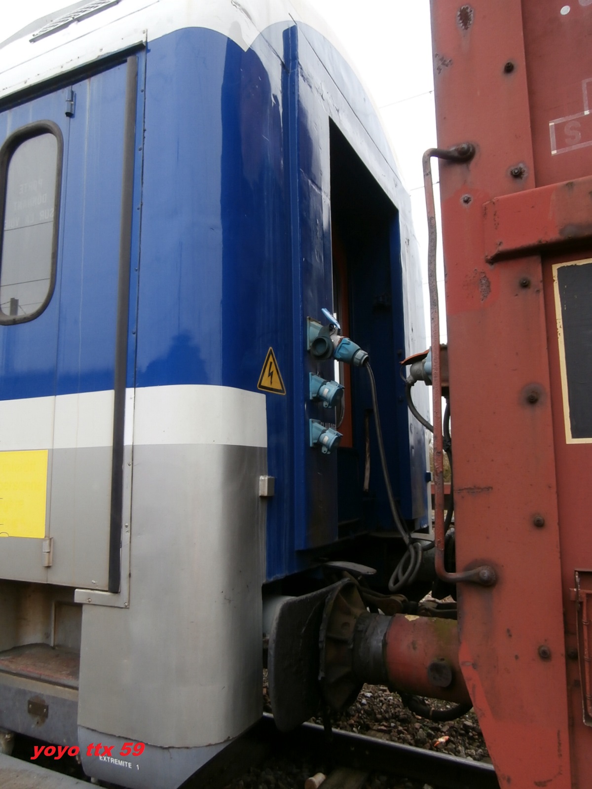 A noter que cette voiture accompagne le wagon de secours de la région de Lille " Uass - H52-6 - 80 87 979 1 547-3 - SNCF - LL " .