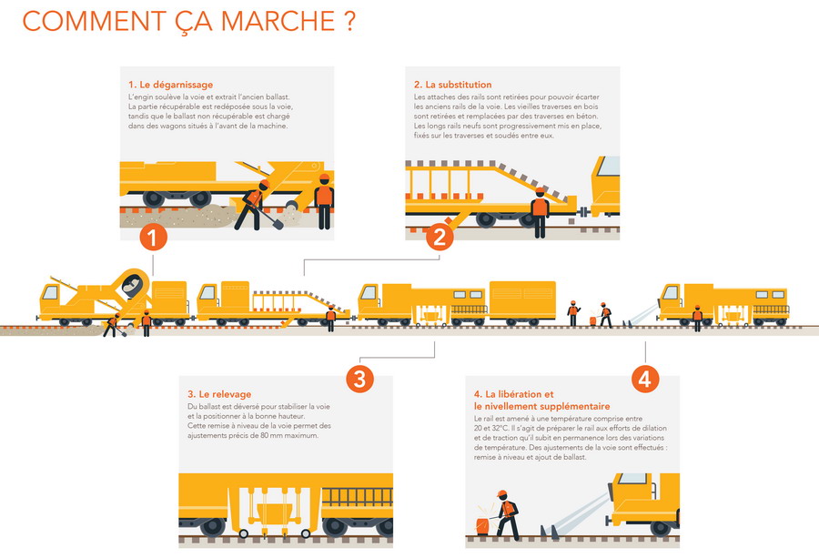 Cela représente 75 000 traverses béton, 45km de rail et 83 000 de ballast à changer.