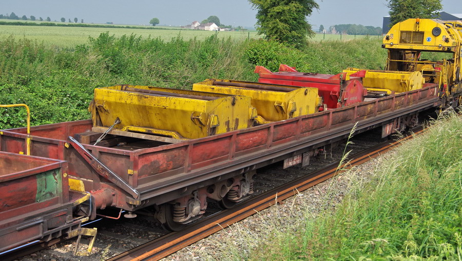 wagon 80 87 976 7 101-9 Ua R00 5 F-SNCF-PSL pour le ramassage et la distribution d'agrès du P95 d'ETF