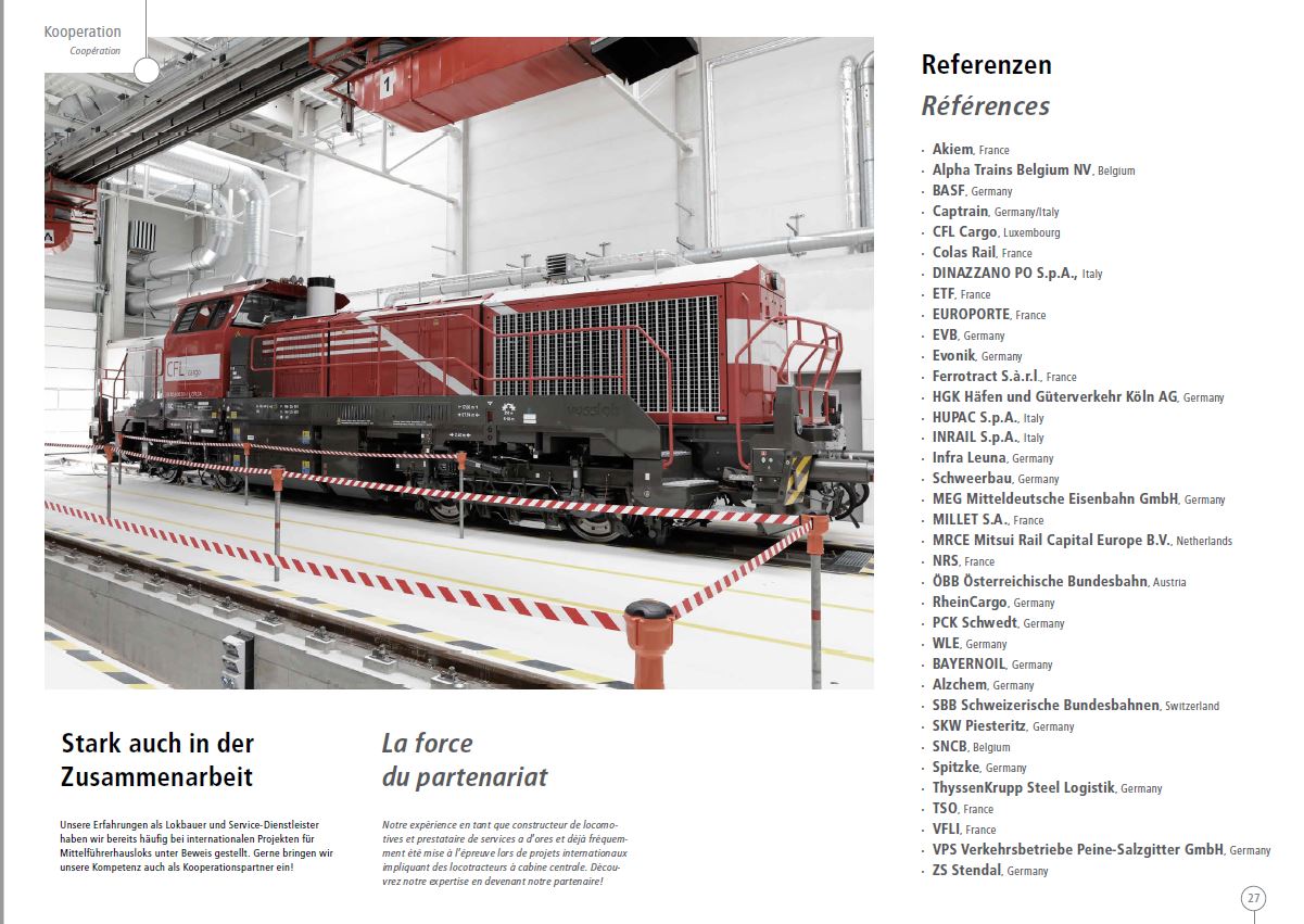 Schwichtenberg indique que Vossloh Locomotives reçoit généralement des commandes de deux à trois unités de clients allant du crédit-bail, de la construction, des chemins de fer privés et des grands chemins de fer d’Etat. Ses plates-formes modulaires offrent la flexibilité nécessaire pour répondre aux demandes des clients. Elle propose également ses propres contrats de service et de crédit-bail.