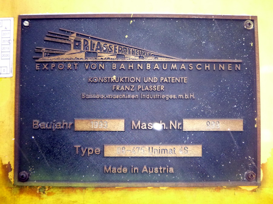 Voici une Bourreuse de Plasser & Theurer n°999 de 1993 de type 08-475 Unimat 4S - VR 99 74 9420 999-9 Ttk 2850