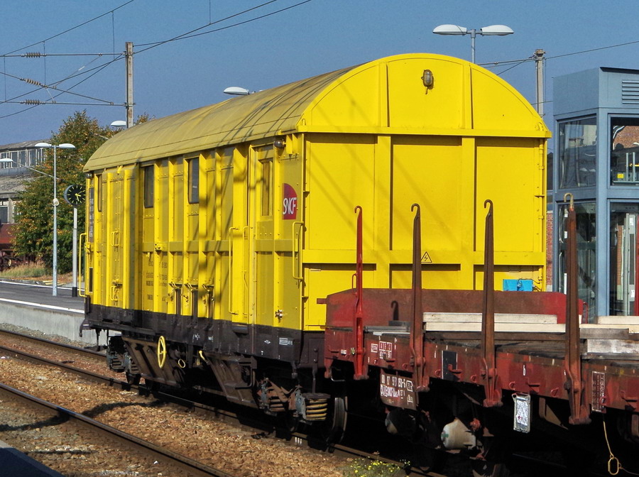 Voici le retour du wagon couvert sortant de révision en livrée jaune le 80 87 979 1 573-9 Uass H52 6 F-SNCFC