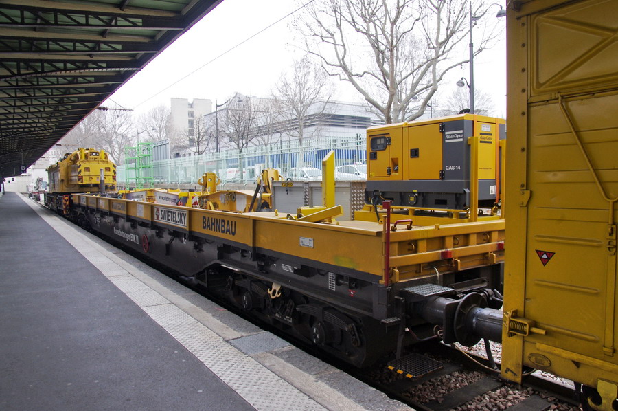 D-RTS 99 80 9419 011-8 - grue KIROW 1600 SWIETELSKY en gare de Paris Est voie n°30 le 21 mars 2015