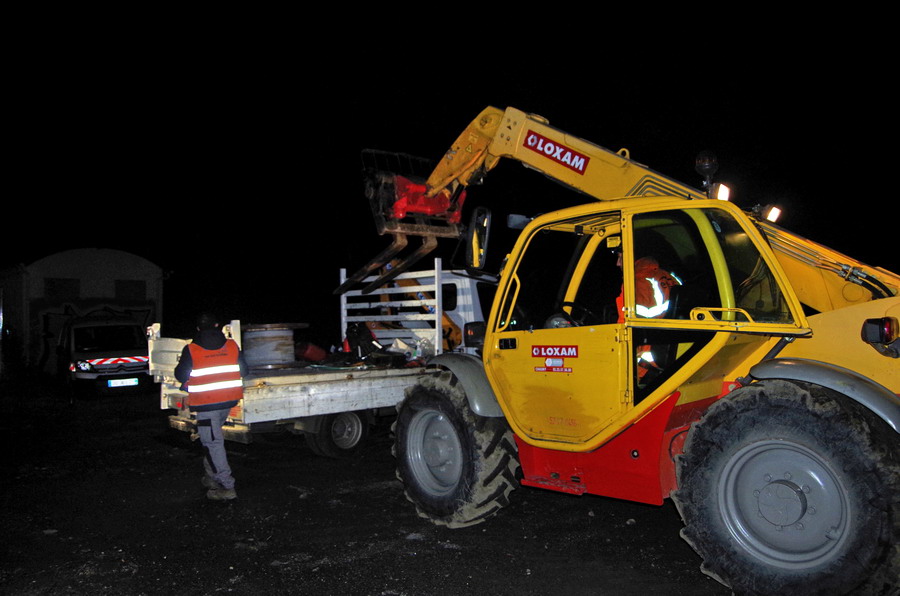 vers un bassin de décantation, le lieu est une zone boueuse et mise en place de câbles de mise à la terre avec enfouissement par