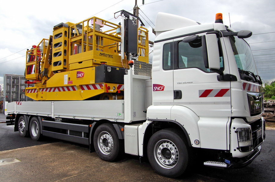 pour atteindre encore plus facilement l'ensemble des points de réglage des supports et portiques constituant les réseaux caténaires.