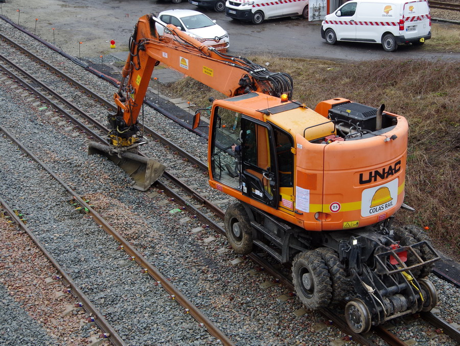 Pour la mise en place d'une sous couche géocomposite drainante par les équipes de Colas Rail,
