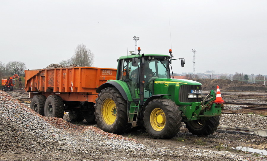 - Tracteur John Deere Team3 6920 avec remorque DANEL de Beauval (transport du ballast) http://www.remorquesdanel.com/