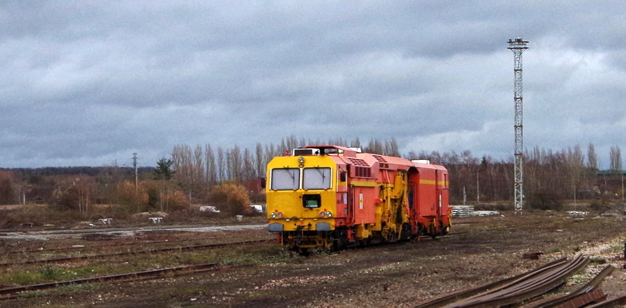 vue sur la basse de travaux arrière de Longueau avec la Tirefonneuse Geismar Stumec TC n°1693342 - Colas Rail 444