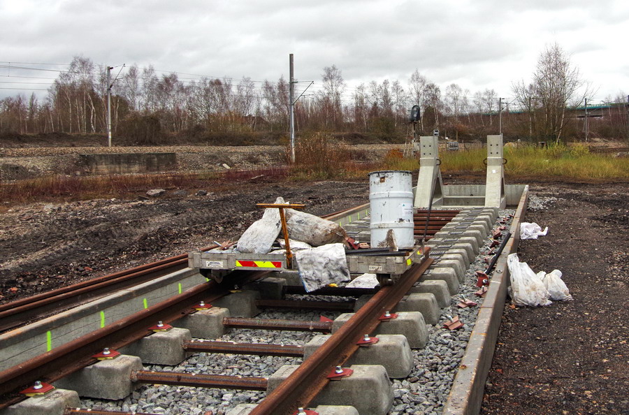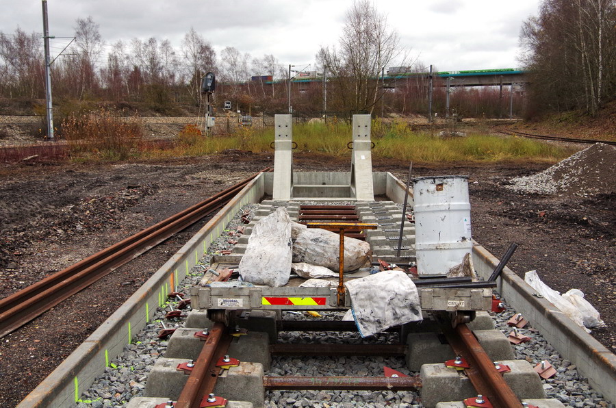 avec l'ensemble du montage des voies bientôt fini par Colas Rail et le montage des heurtoirs sur les nouvelles voies de garage pour les trains