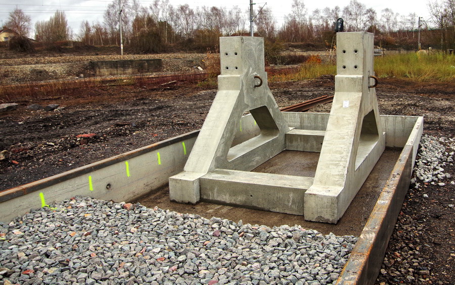 Traverses bi-blocs en béton armé sur la base de travaux arrière à Longueau le 07-12-2018