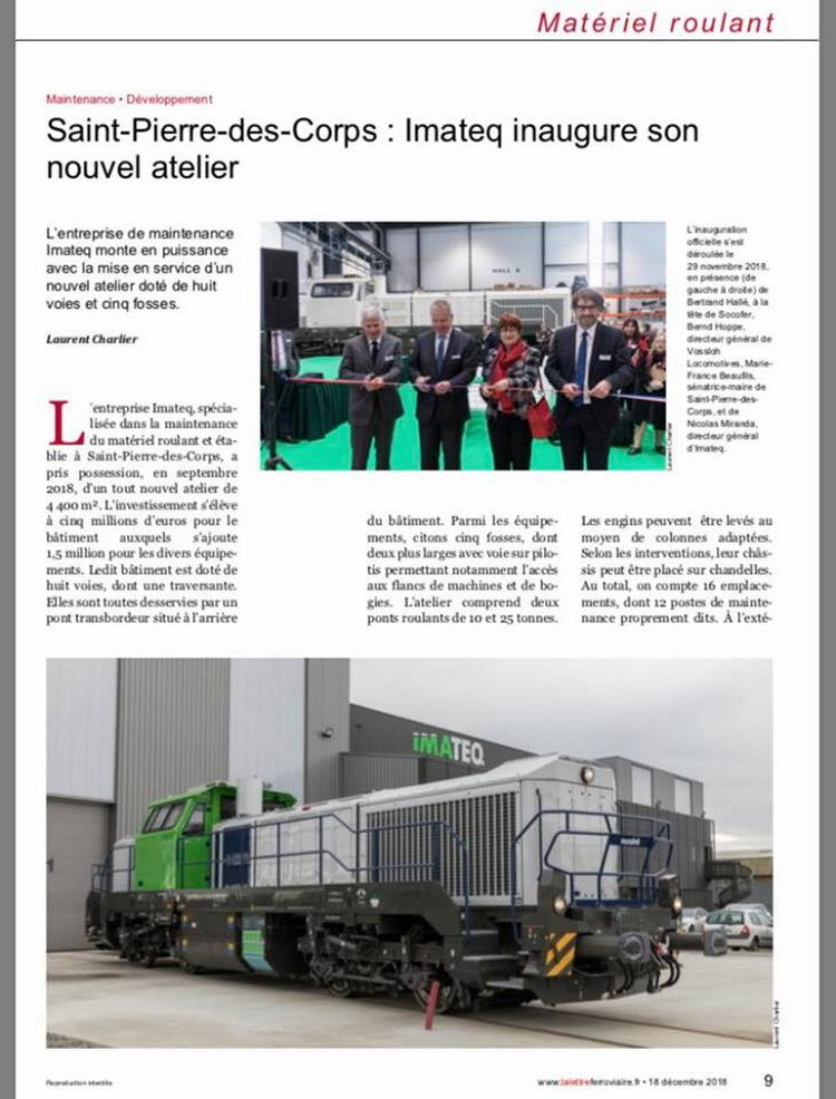 IMATEQ pôle ferroviaire privé pour le matériel SNCF s’installe à St Pierre des Corps !