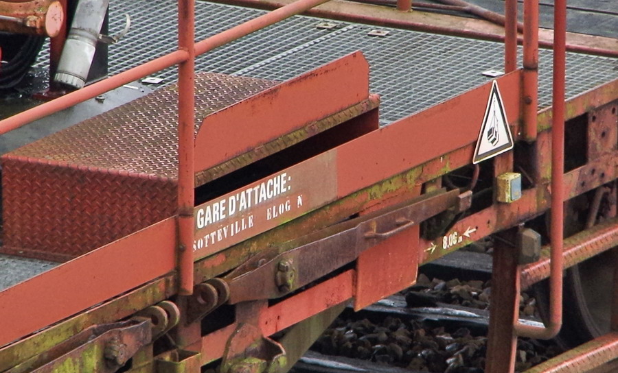 Voici le wagon 40 87 952 1 637 8 Us K24 1 SNCF-MN gare d'attache Sotteville avec une grue de type ATLAS 60.1