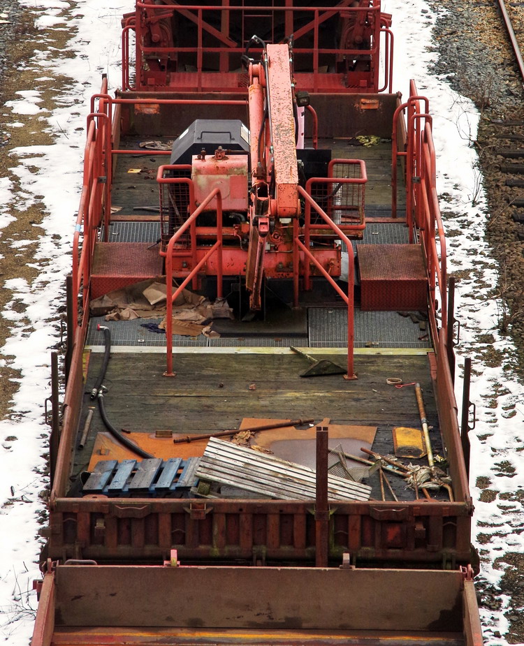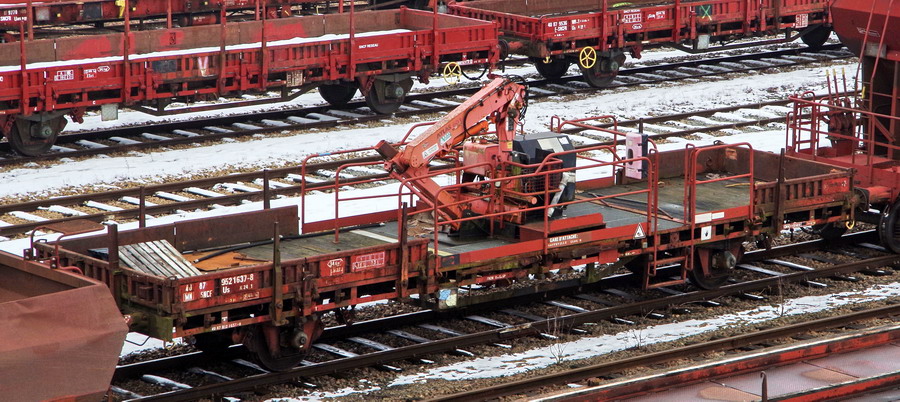 Voici le wagon 40 87 952 1 637 8 Us K24 1 SNCF-MN gare d'attache Sotteville avec une grue de type ATLAS 60.1