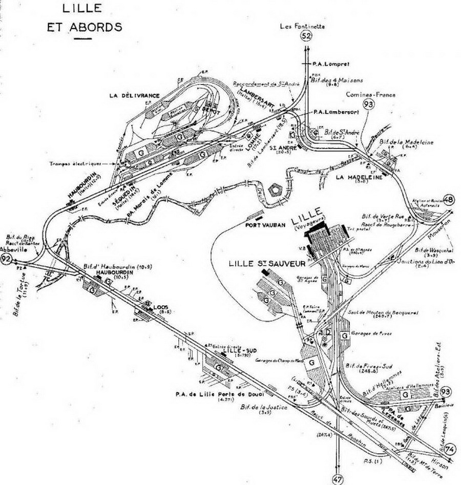 l'ancienne situation du faisceau sur la base de travaux de la LGV Nord de Lille-Délivrance à Lomme