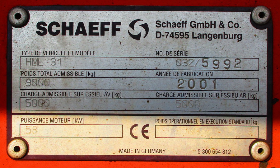 avec l'identification de la Pelle avec la plaque constructeur : Schaeff HML 31 - 032/5992 - 2001 SNCF-LM ''L'EFFICIENTE''
