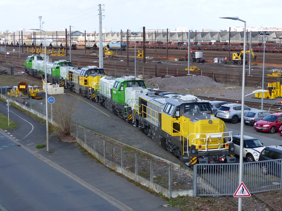 voici l'arrivée du TM d'Europorte avec la BB 79001 le mardi soir 12 mars 2019 au niveau de la grille de sortie du site de