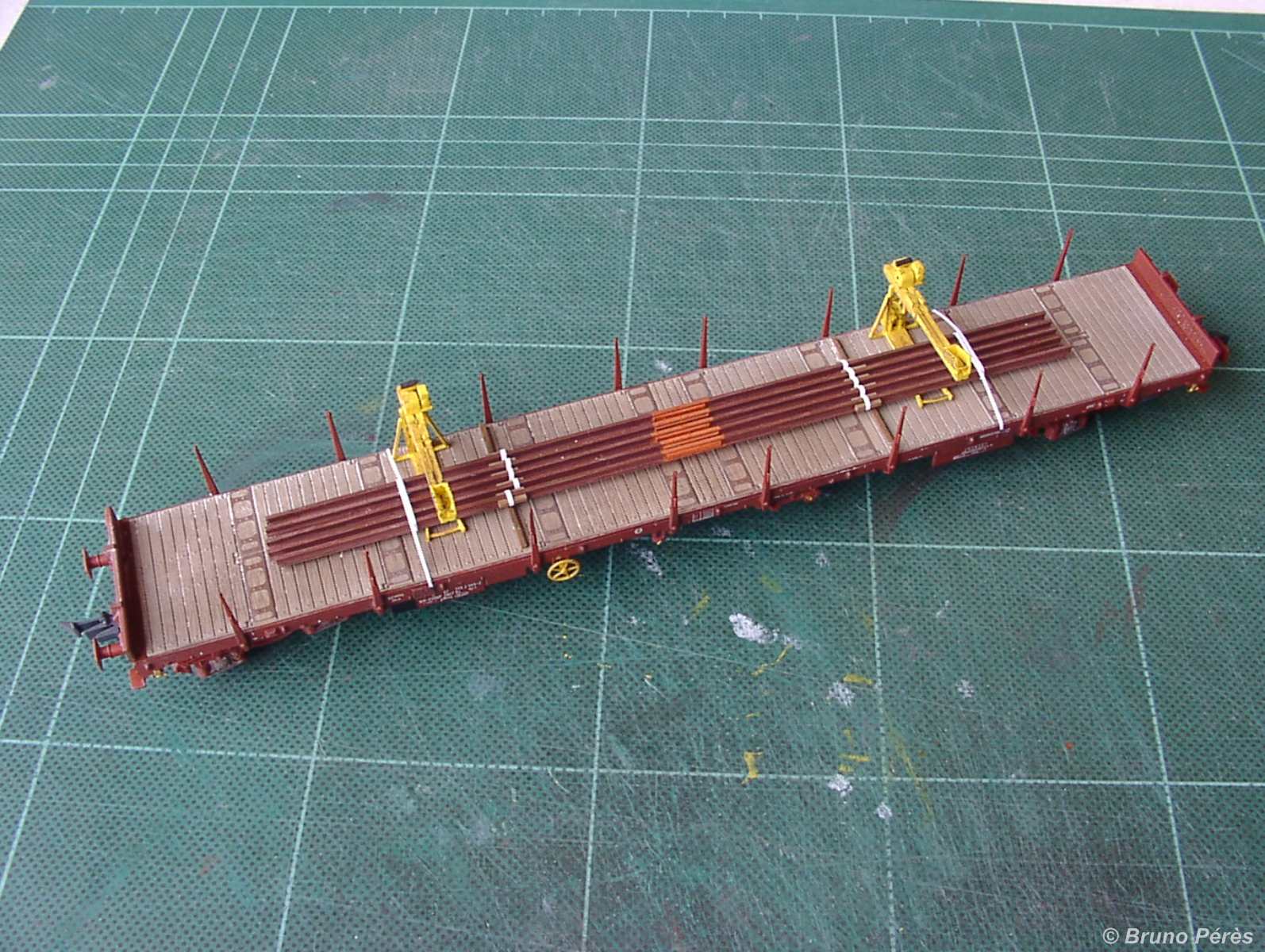 C'est en chantier depuis pas mal de temps déjà, mais il va falloir que je m'y remette puisque, saison aidant, je dispose d'un peu plus de temps. Ils seront déclinés en différentes variantes : avec ou sans moteur, montés ou pied d'un côté et potence de l'autre, version SNCF, ETF ou Colas Rail. Certains seront destinés au décor, d'autre aux chargements, en position de travail ou démontés.