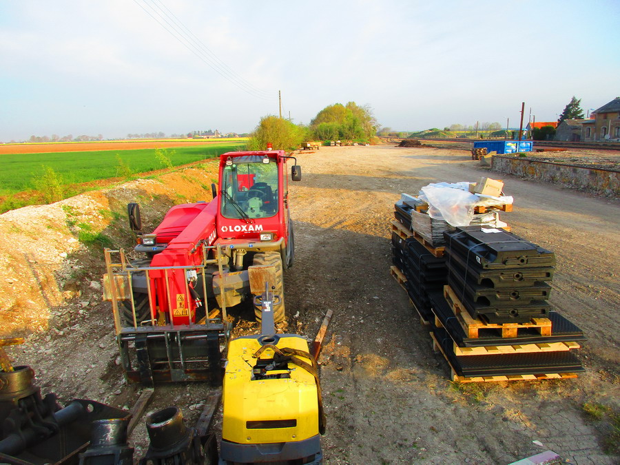les engins de travaux (lorrys et bourreuse) sont remisés en gare de Reignac sur Indre. le 29-03-2019