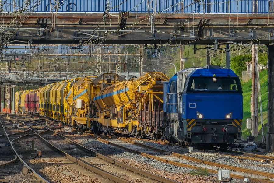 Il fait tout ou presque et avance sur la voie ferrée au rythme d’un kilomètre par jour : voici l’impressionnant train-usine qui régénère