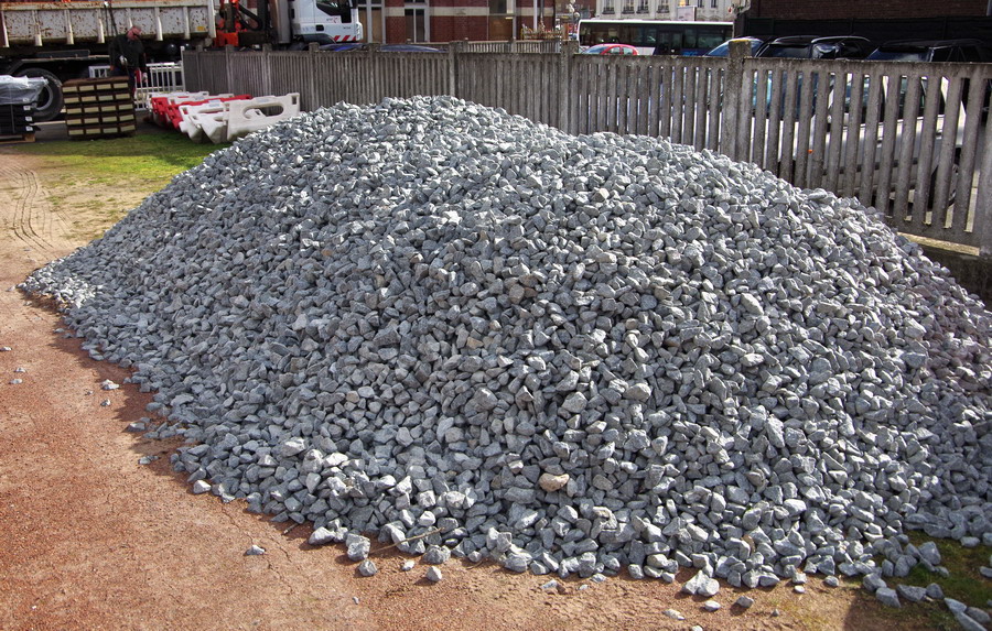 un tas de ballast pour les travaux du pN à Cambrai le 11-03-2019