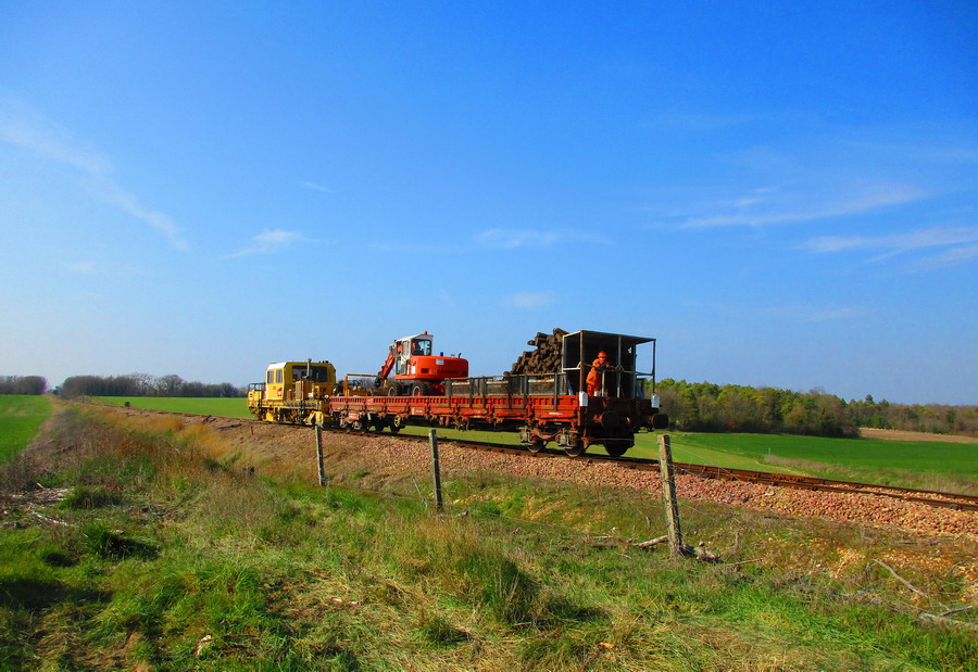 Tous les autres engins de travaux (lorrys et bourreuse) sont remisés en gare de Reignac sur Indre. Sauf le lorry 10 qui va passer