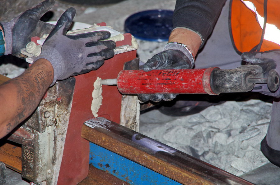 La suite avec la préparation pour une nouvelle Soudure Aluminothermique par la société Transalys