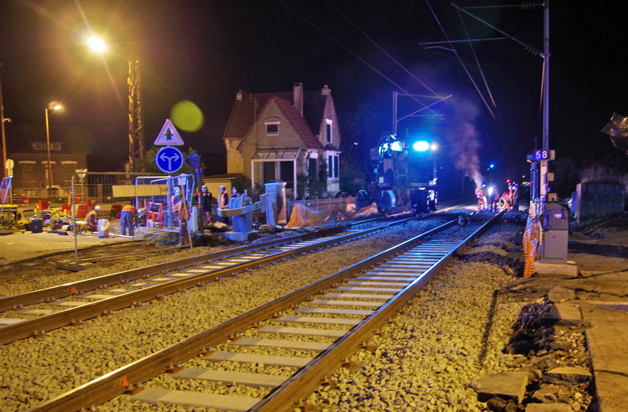 passage d'une tirefonneuse au PN 58 à Chauny nuit du 25 au 26-04-2019