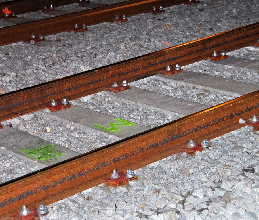 avec une nouvelle séance de découpe avec une tronçonneuse du rail au PN 58 à Chauny nuit du 25 au 26-04-2019