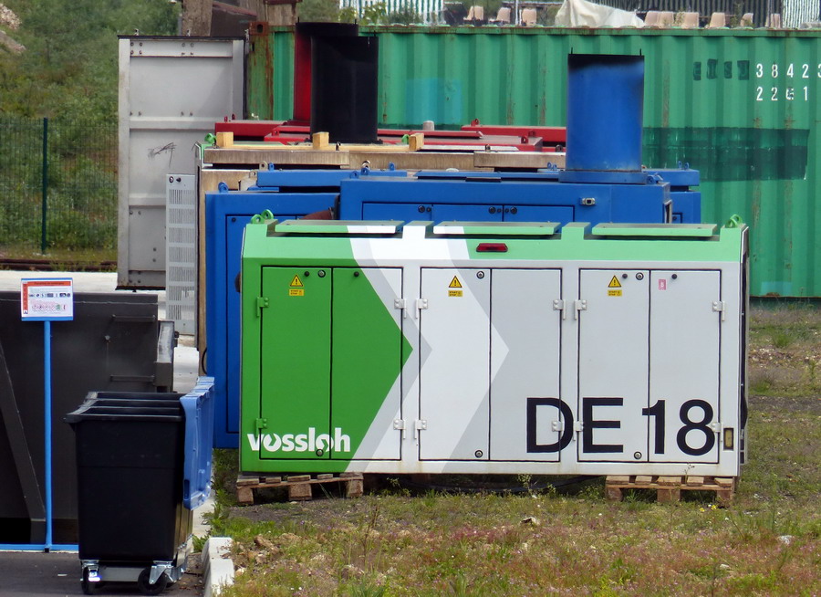 vue d'ensemble des machines Vossloh sur le site de maintenance IMATEQ à SPDC le 16-05-2019