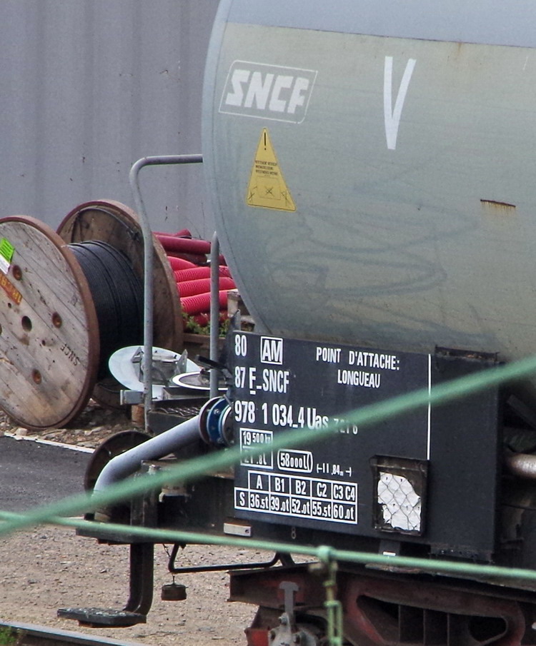 Voici le wagon citerne 80 87 978 1 034-4 Uas Z21 6 F SNCF-AM - point d'attache Longueau