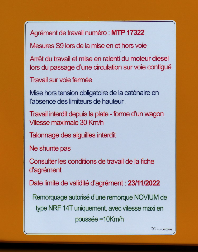 Agrément de travail MTP 17 322 - 23-11-2022 avec possibilité avec remorque NOVIUM de type NRF 14 T