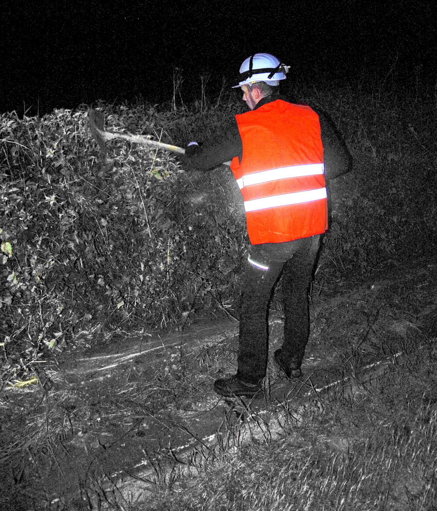 travaux préparatoires pour poser le câble de la fibre optique nuit du 14 au 15-05-2019