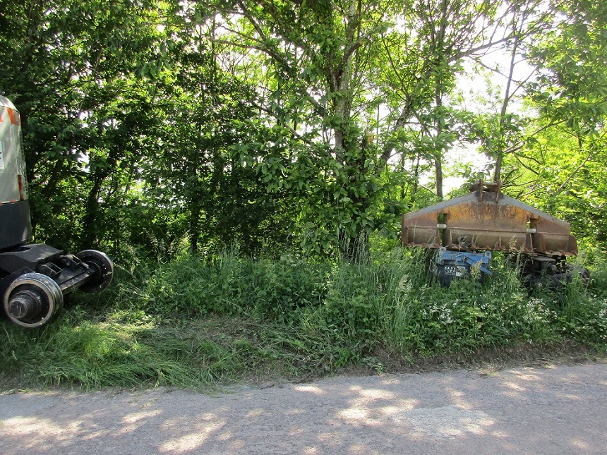 Hier mercredi 9 Juin 2021, au PN 10 du lieu dit "La maison brûlée" (commune de Gimel les cascades en Corrèze), la PRR a rejoint une autre PRR (D2R WX 170 C162 de Ferroviaire Rhône Alpes) stationnée depuis la semaine passée :