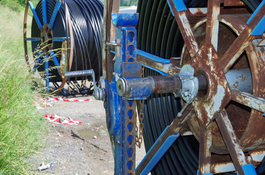 les tourets et les dérouleurs de fibre optique au point C4 à Jussy le 11-06-2019